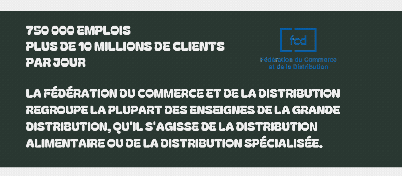 La Fédération du Commerce et de la Distribution regroupe la plupart des enseignes de la grande distribution, qu'il s'agisse de la distribution alimentaire ou de la distribution spécialisée.