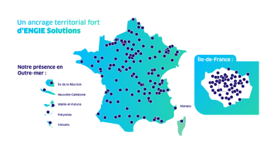ENGIE Solutions est une marque du Groupe ENGIE qui est dédiée aux activités de maintenance et qui accompagne les villes, les industries et des entreprises tertiaires sur la voie de la décarbonation. Pour accélérer leur transition énergétique et mieux associer performance économique et énergétique, chaque jour, au cœur des territoires, nos 15 000 collaborateurs conçoivent des mix énergétiques et des installations pour répondre aux besoins de nos clients, en fonction de leurs ressources, grâce à une palette de solutions complémentaires comme les réseaux locaux d’énergie, la production d’énergies décarbonées sur leurs sites ou nos services de performance énergétique.