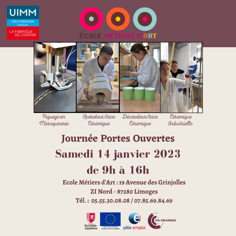 [JOURNEE PORTES OUVERTES] L'Ecole des Métiers d'Art du Pôle Formation UIMM Limousin vous donne rendez-vous le samedi 14 janvier pour sa journée portes ouvertes !
